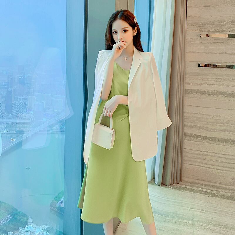 スリングスカート女性2021年夏新しいフランスのレトロなウエストウエストは薄い気質のアセテートサテンスリングスリングドレス女性でした サマー 夏物 yingd99831284441