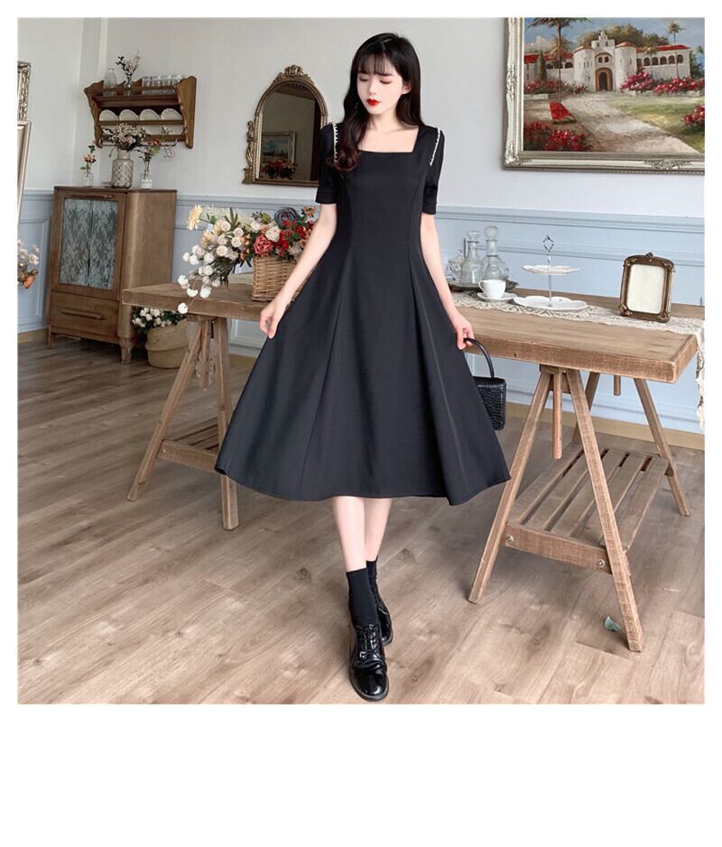 フランスのレトロなヘップバーンスタイルのリトルブラックドレスシックなデザイン高級感の高いライトラグジュアリーセレブリティフライドストリートスクエアカラードレス女性の夏 サマー 夏物 スクウェア yingd70096978749