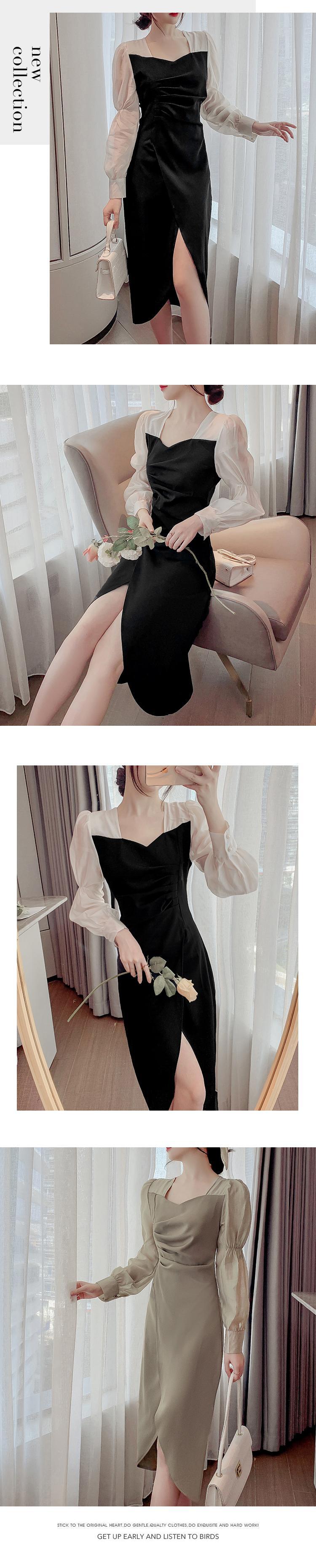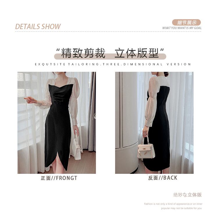 2021年春の新しいフランスのレトロなウエストウエストは薄くて軽くて豪華なデザインで、長袖のスクエアネックドレスの女性でした ロング スプリング 春物 スクウェア yingd23658913603