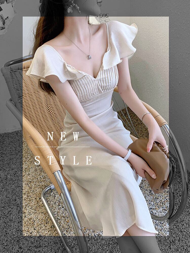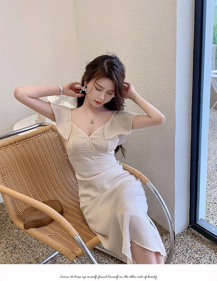 フランスのレトロな高品質の気質の女神ファンGaodingライトラグジュアリーレディースウエストセクシーなVネックドレス女性の夏 サマー 夏物 yingd82904237976