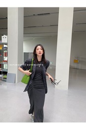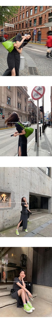 フランスのオートクチュールの女性の女神ファンのシックなデザインは、スリムなスリムなスリットの高解像度ドレスの女性の夏を折ります サマー 夏物 yingd81340363407