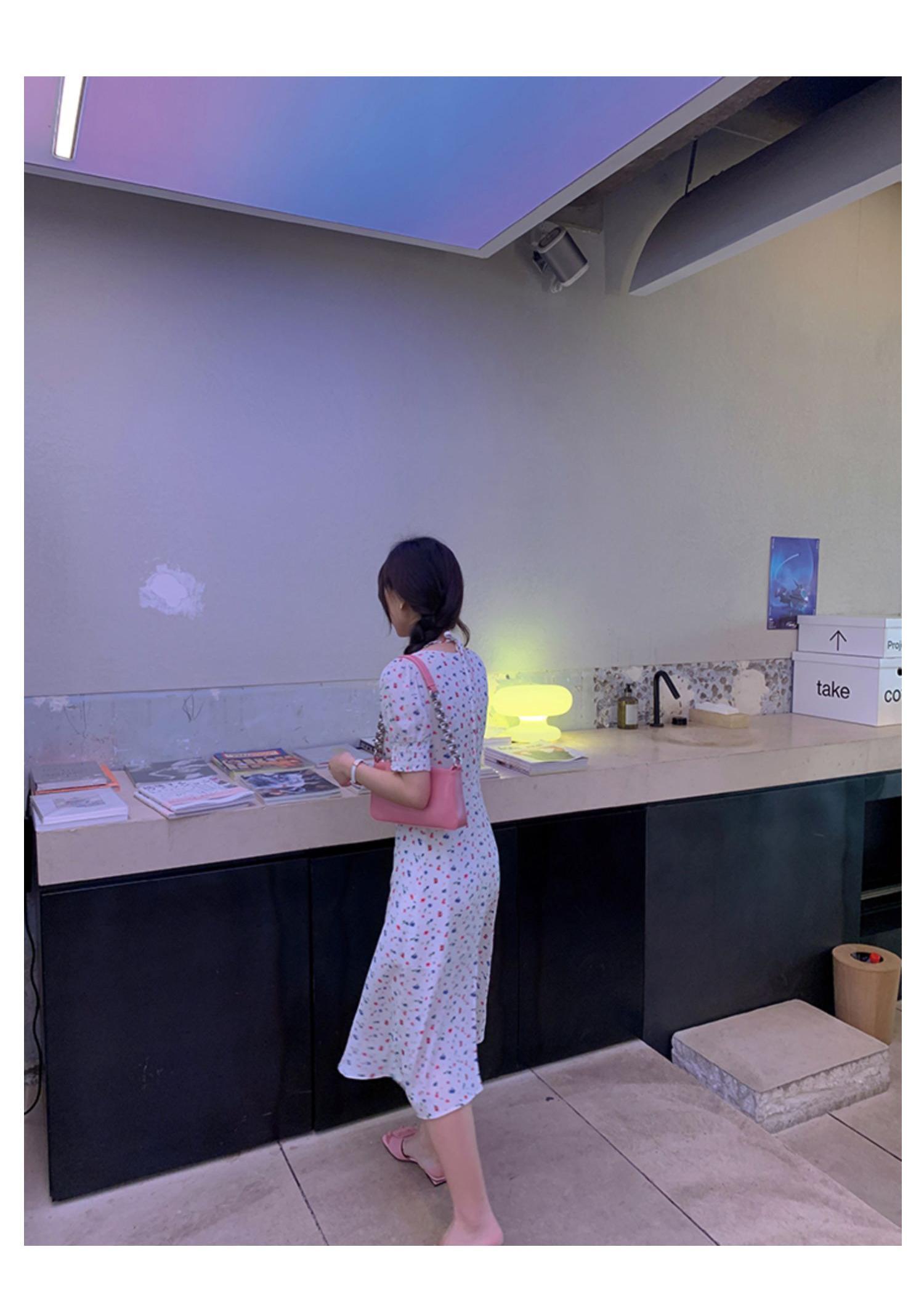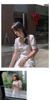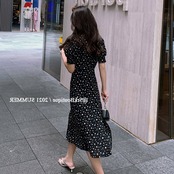 フランスのレトロなヘップバーンスタイルのロングスカートサマーフォールドデザインセンススクエアネックパフスリーブレース水玉花柄ドレス女性 夏物 スクウェア yingd99341660644