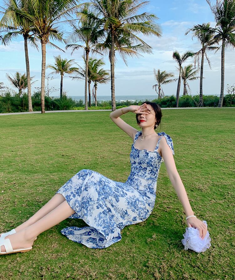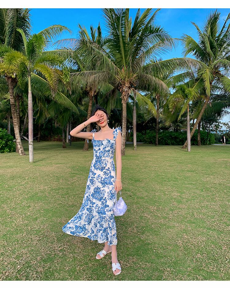 2021年夏新しい女性フレンチレトロセクシースリングロングスカート気質ライト成熟した風シフォン花柄ドレス女性 サマー 夏物 yingd66862832309