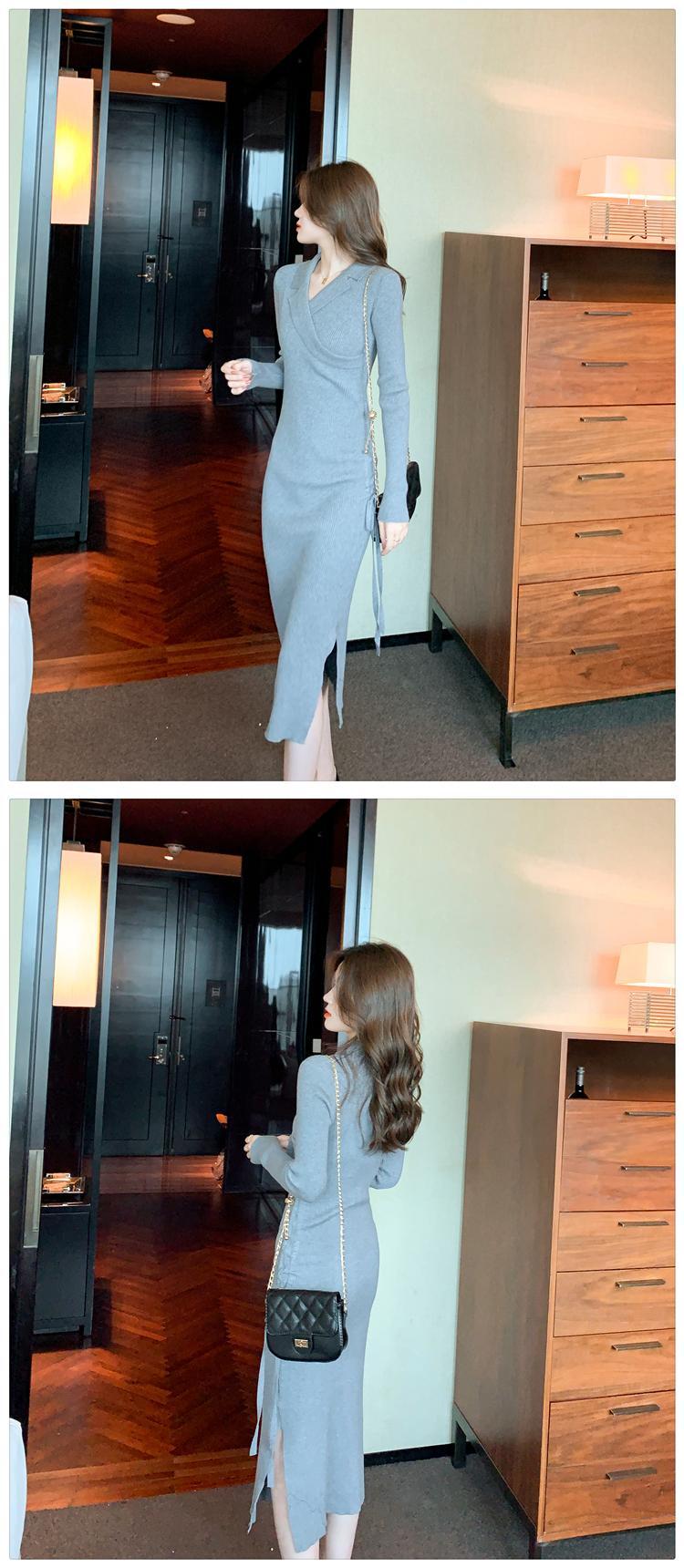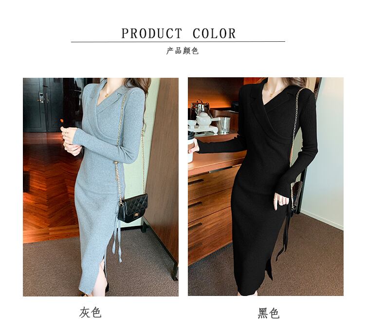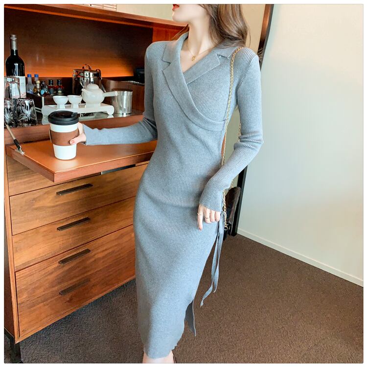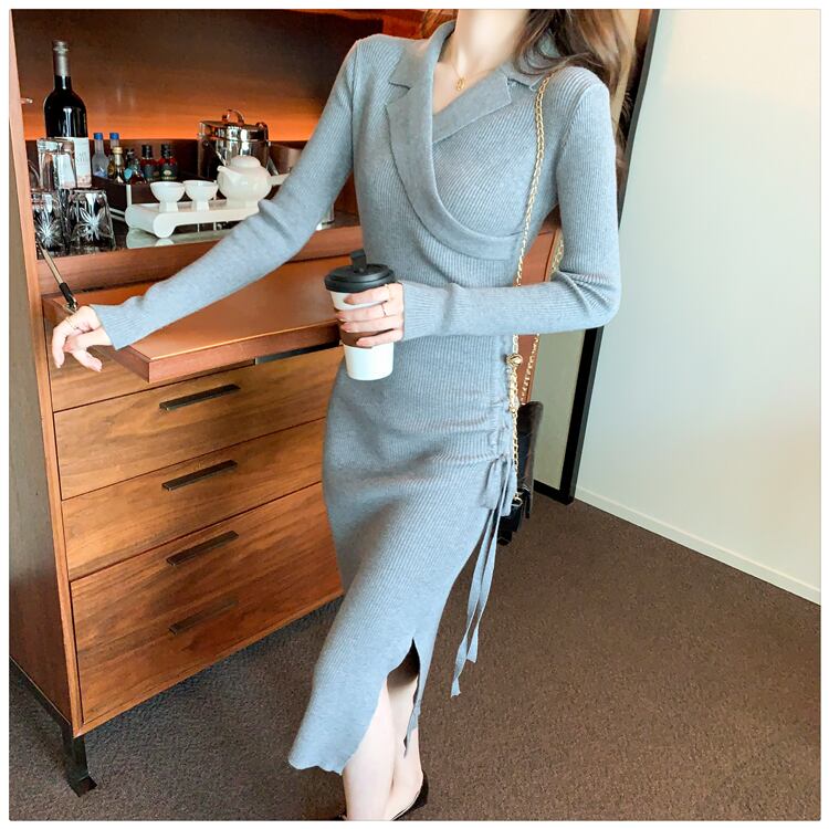 スーツラペルドレス2021年秋新作フレンチレトロデザインセンスニッチ巾着ロングオーバーザニーセータースカート オータム 秋物 yingd63121937088