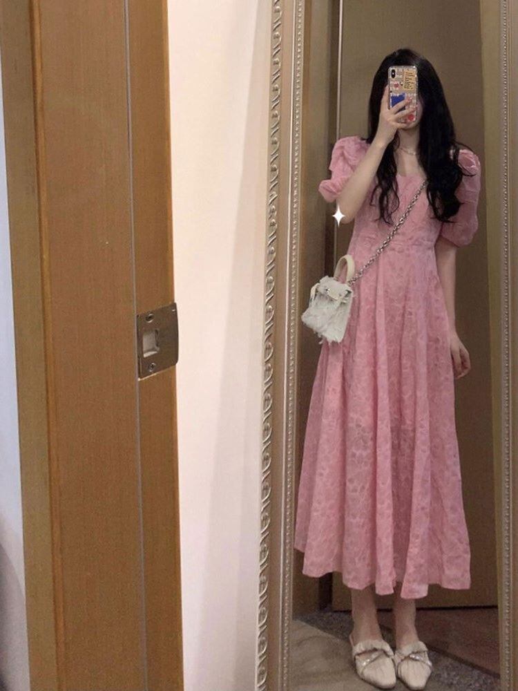 フレンチティーブレイク初恋ドレスレトロ優しい風甘いパフスリーブウエスト痩身妖精ドレス女性夏薄 大人ガーリー スウィート キュート カジュアル サマー 夏物 yingd72909390604
