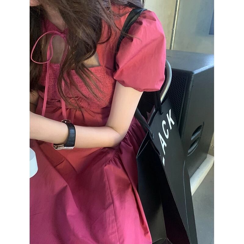 フランスのニッチな初恋のドレス、レトロな穏やかな風、ティーブレイク、キキョウ、ウエストは細く、パフスリーブドレスの女性の夏 サマー 夏物 yingd21196837641