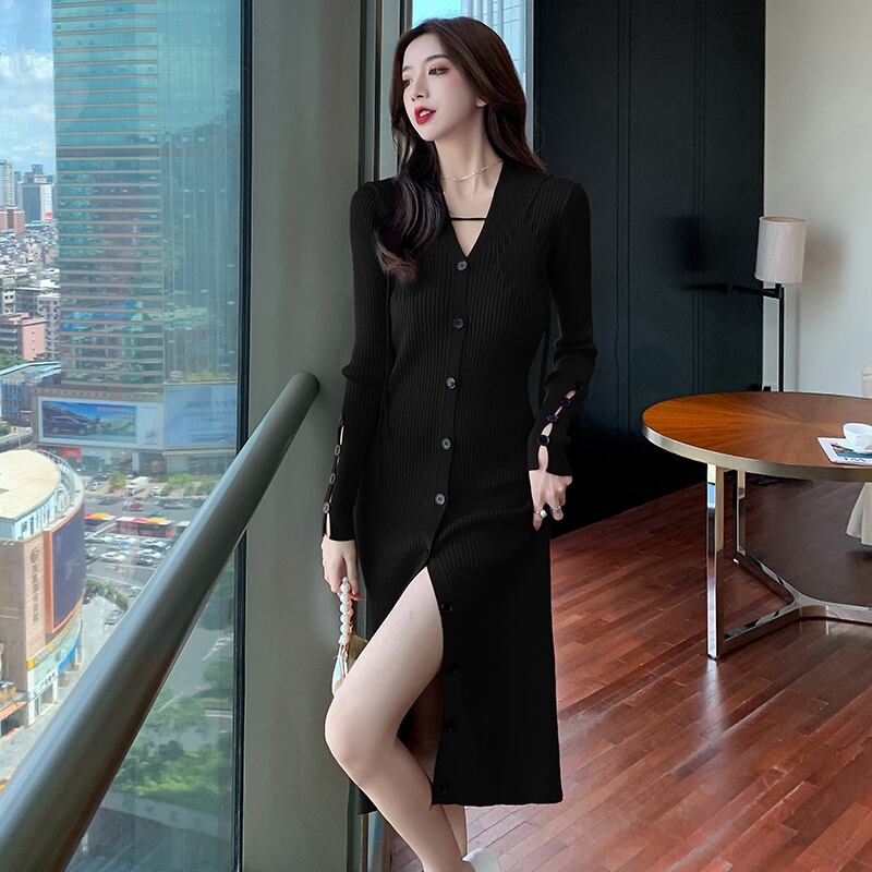 コートに長い膝上セータードレス、スリムで薄い気質、軽くて豪華な女性のニットドレス、女性の秋と冬 ロング オータム 秋物 ウィンター 冬物 yingd47354275057