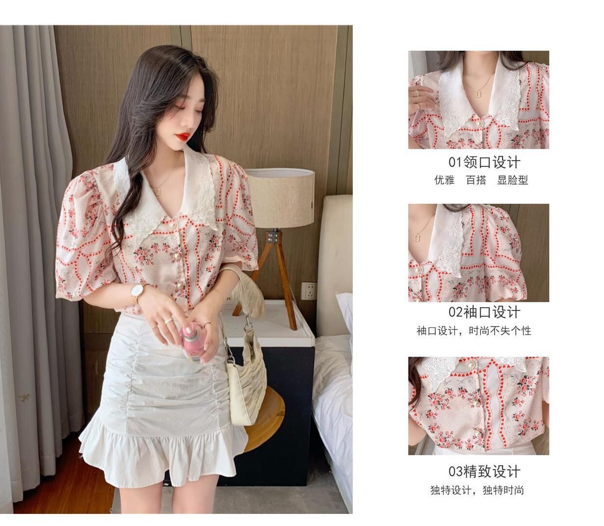 2021年夏の新しいフレンチレトロパフスリーブフローラルシャツ女性デザインセンスニッチシフォンシャツトップ女性トレンド サマー 夏物 花柄 yingd56105259406