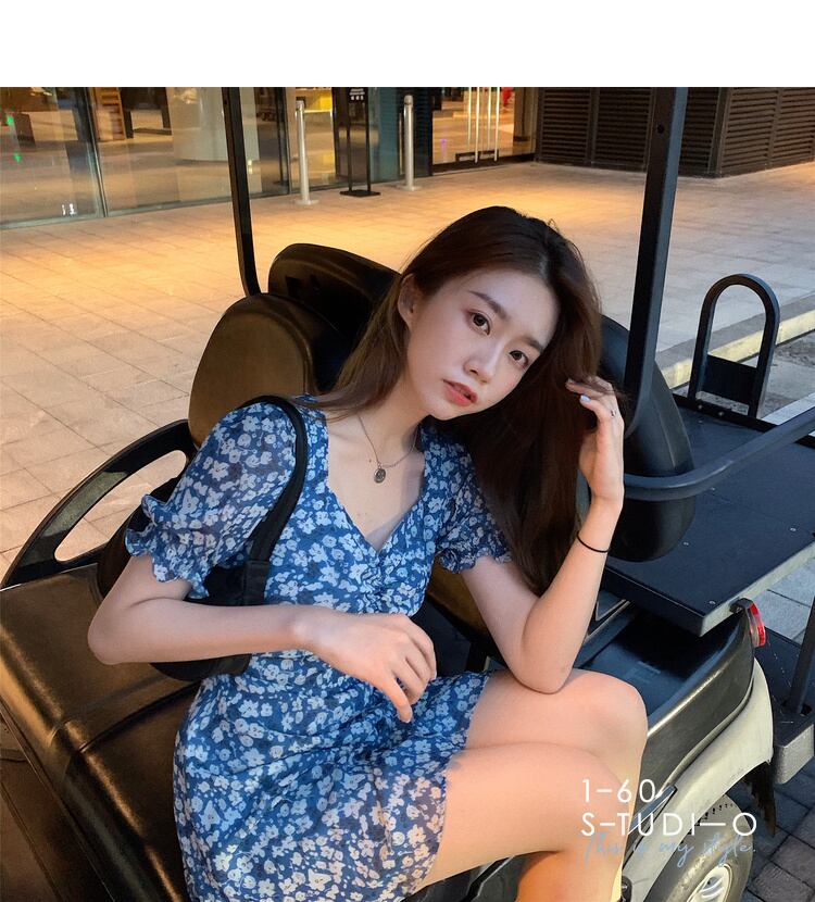 フランスのニッチな初恋の妖精のドレスフランスのレトロなスクエアネックパフスリーブ花柄のドレス女性の夏のドレス2021新しい サマー 夏物 スクウェア yingd37590038807