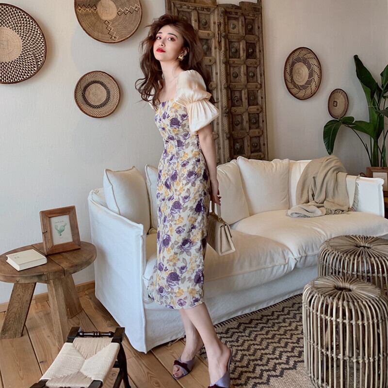 フランスのレトロなキキョウのティーブレイクスカート、ウエストは細かった、気質、軽い豪華な女性、ハイセンスフローラルドレス、女性の夏 サマー 夏物 花柄 yingd85857151378