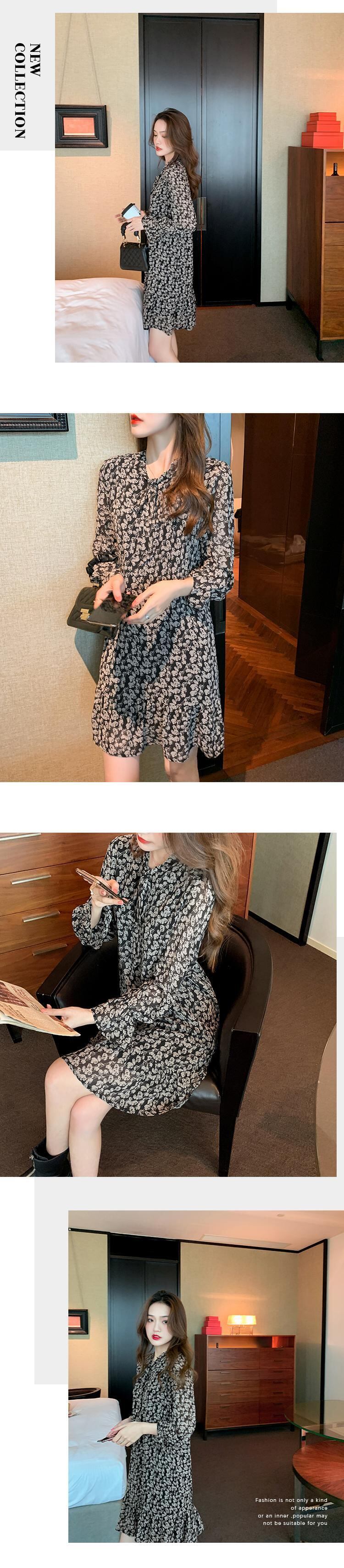 2021年春新しい女性のフランスのレトロな小さな男ボトミングフローラルショートスカート長袖シフォンフローラルドレス ロング スプリング 春物 花柄 yingd28072390103