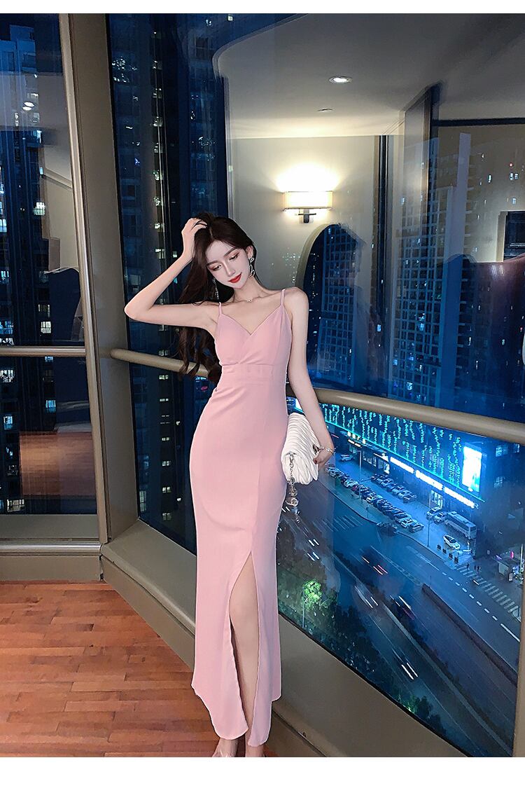 フランスのレトロなセクシーなスリングドレス、ウエストと細い気質の女神ファン青州風スプリットVネックドレス女性 yingd86864566409