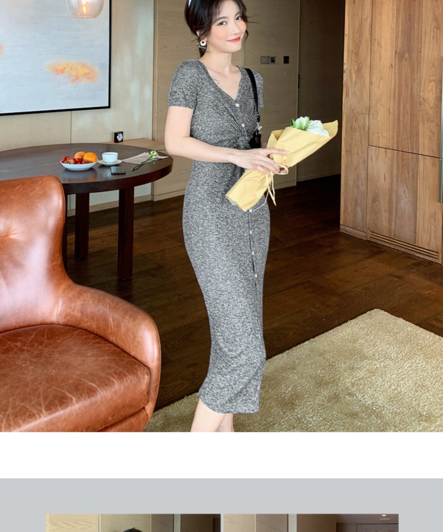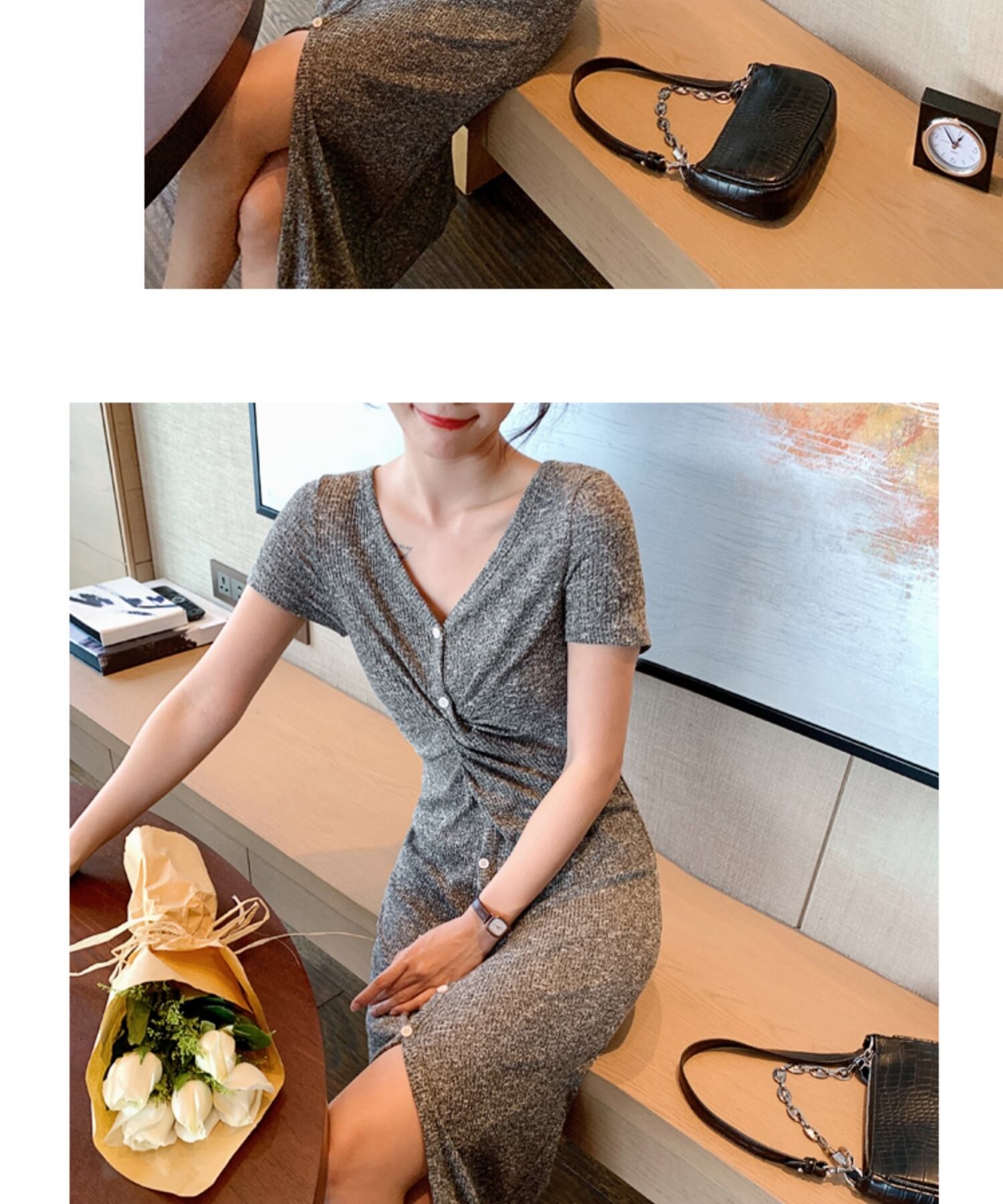 フランスのレトロなロイヤルシスターライト成熟したスタイルのセクシーなスプリットロングスカートスリムな痩身ウエストバッグヒップVネックドレス女性の夏 サマー 夏物 yingd23521806672