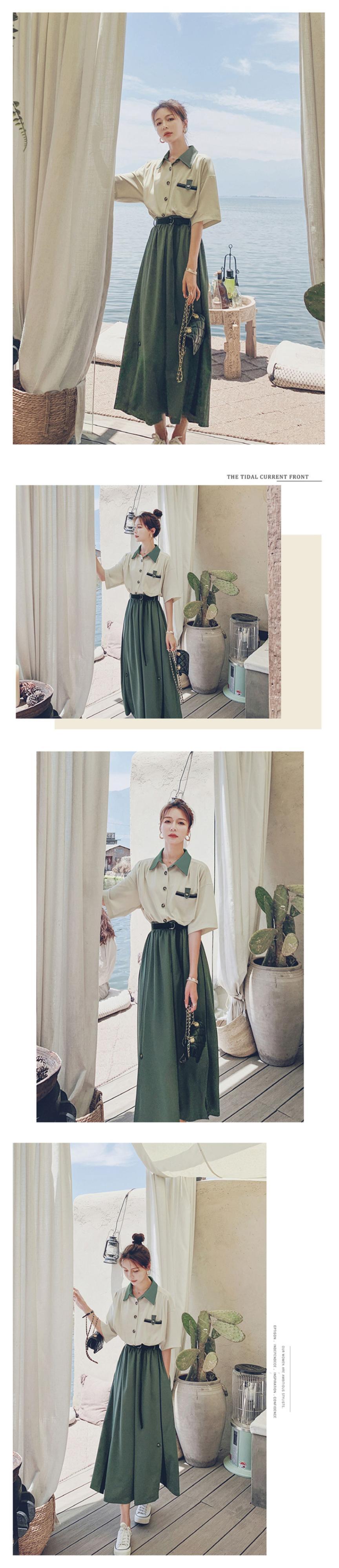 フランスのレトロな優しいスタイルのティーブレイクベルフラワースカートシックなハイセンスの女神ファンコントラストカラーステッチシャツドレス夏 サマー 夏物 フラワーデザイン yingd31084933218