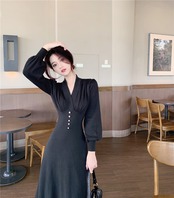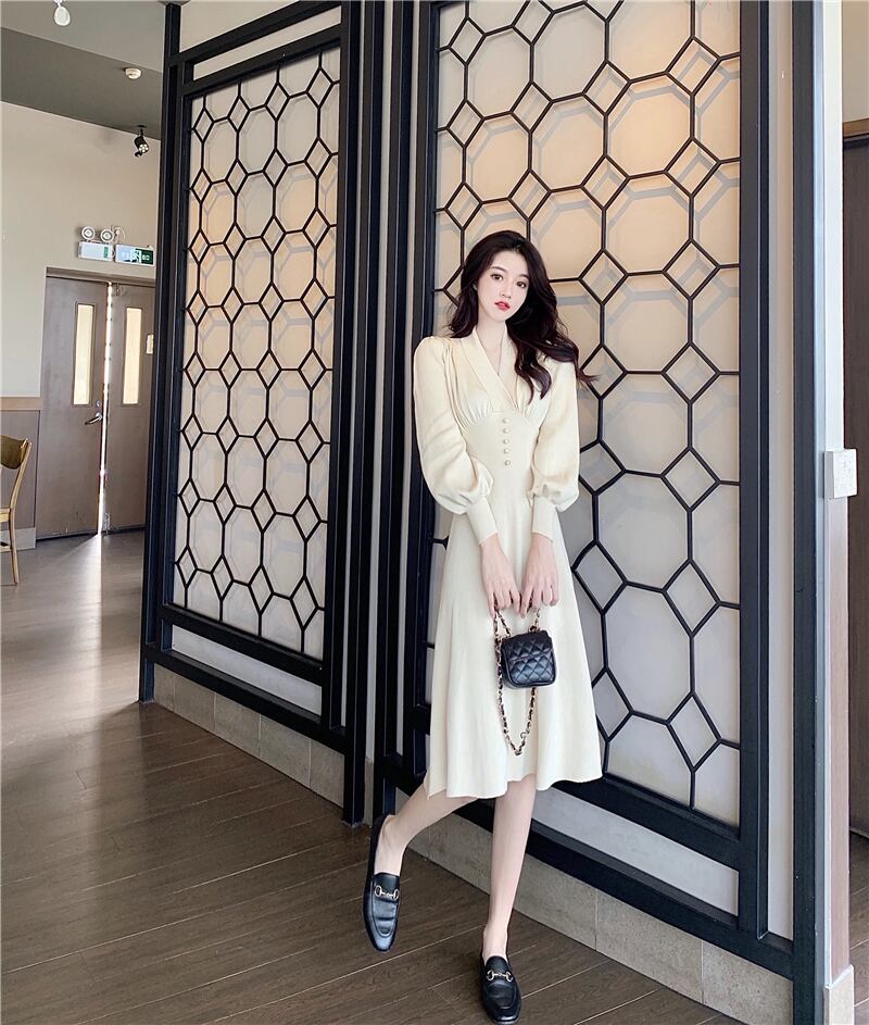 フランスのレトロなウエスト、薄くて軽くて豪華な女性の穏やかな風、ニットドレスの内側にコートを着た女性の秋と冬 オータム 秋物 ウィンター 冬物 yingd9234368948