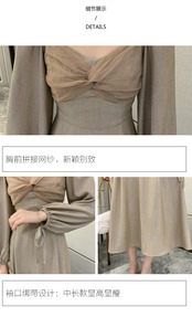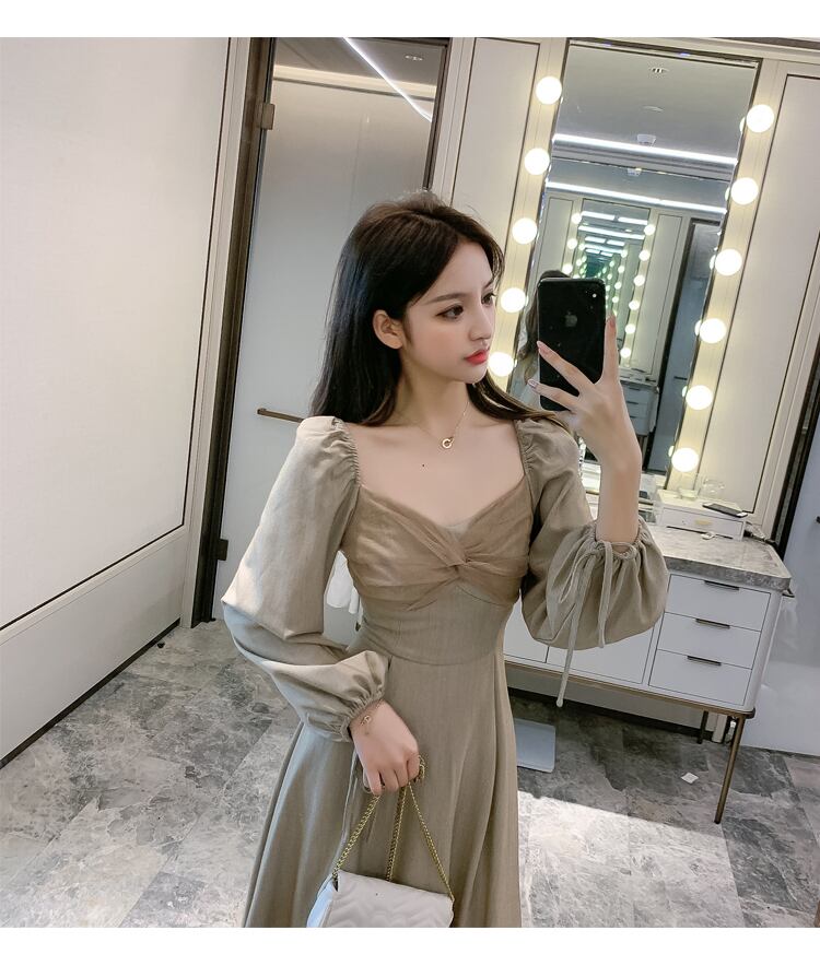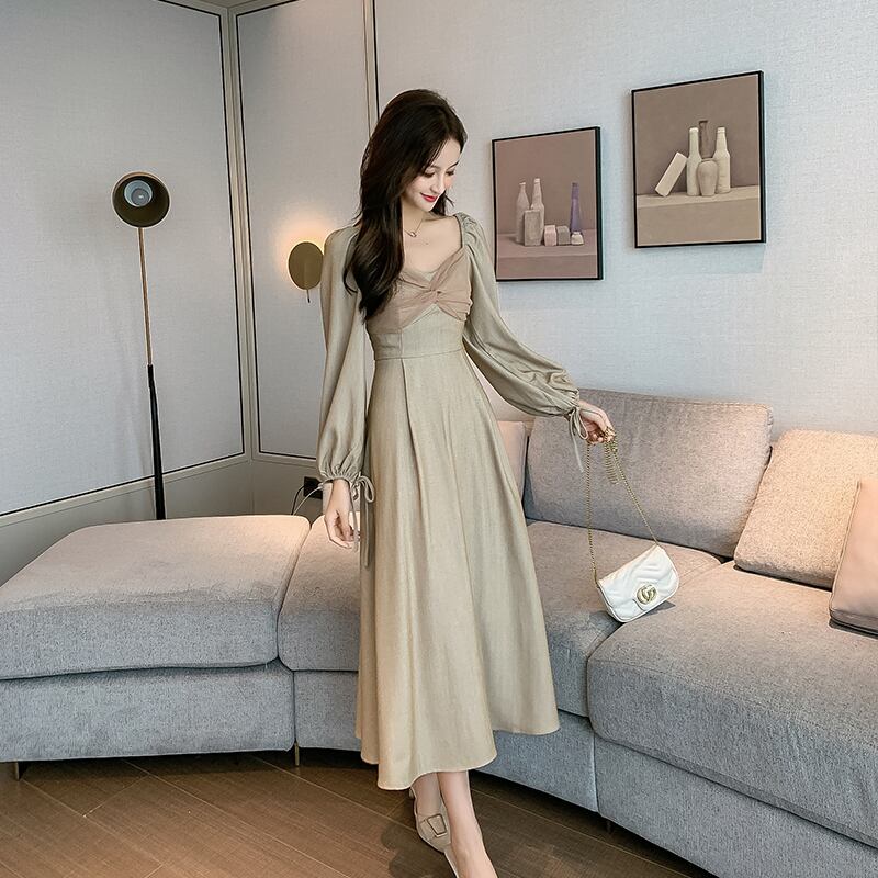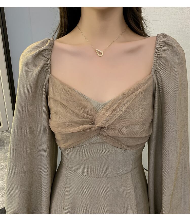 2021年春の新しい女性のフレンチレトロウエストスリミング高品質のセクシーなメッシュスクエアネックドレス スプリング 春物 スクウェア yingd53882813305