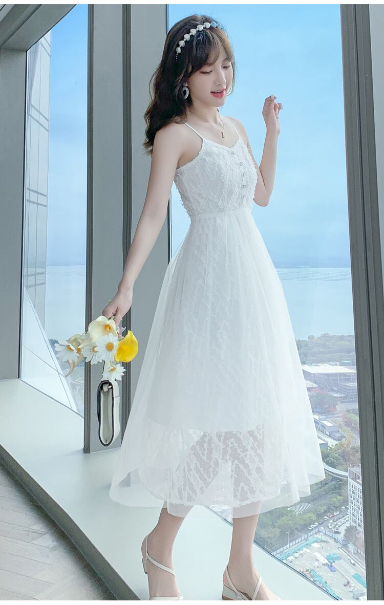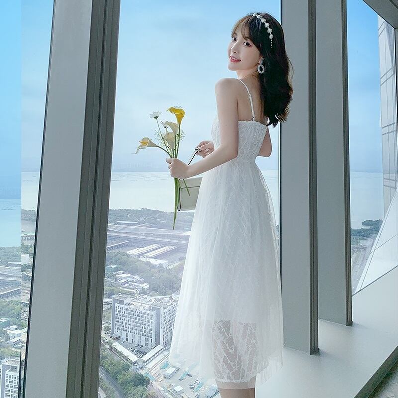 フランスのレトロな初恋の妖精のドレスのウエストは細く、気質の優しい風メッシュレースのスリングドレス女性の夏 サマー 夏物 yingd8478228089