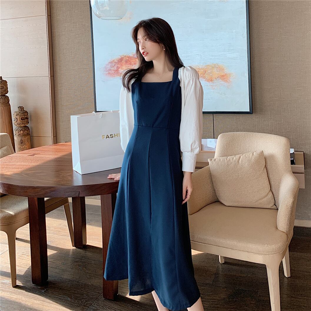 フランスのレトロなヘップバーンスタイルのロングスカートは薄くて気質の高い女神ファン中龍スクエアカラー長袖ドレス女性の秋 オータム 秋物 スクウェア yingd75937500226
