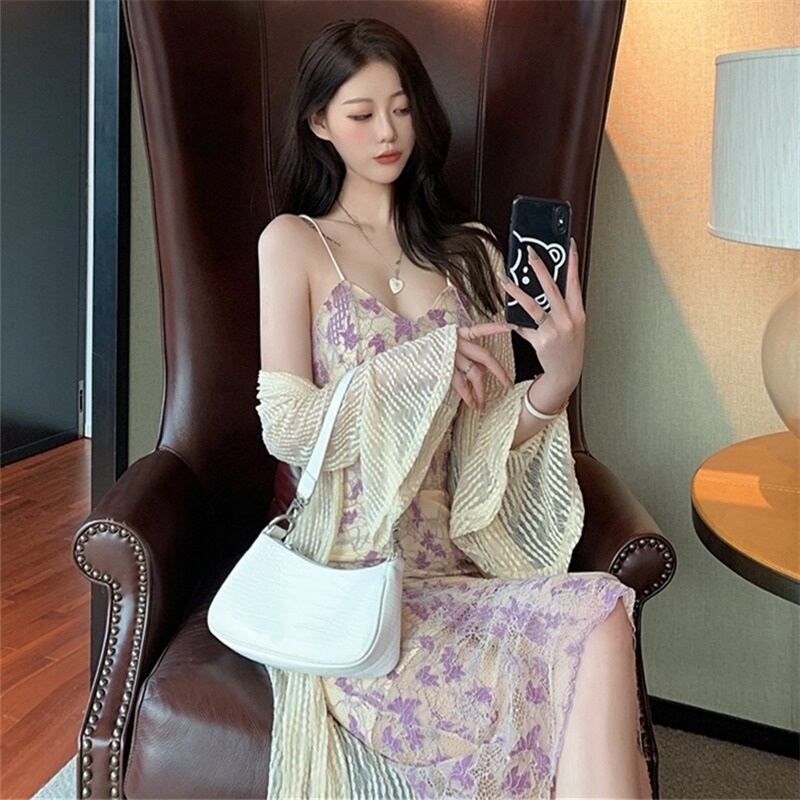 フランスのレトロなティーブレイクスカートのウエストは細く、高級感のある優しい風のセクシーなレースのスリングドレス女性の夏 サマー 夏物 yingd79898704820