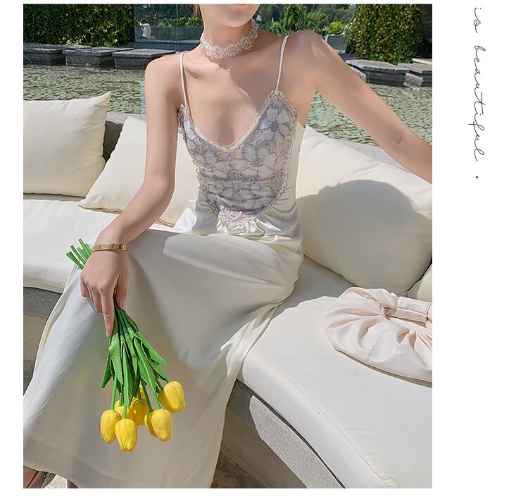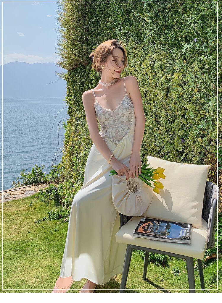 フランスのレトロ、冷たい風、高級感の高さ、軽快な高級感、レディースウエスト、気質、セクシーなレースの妖精のドレス、夏の薄いセクション サマー 夏物 yingd17321175652