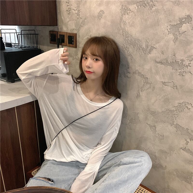 トップス2020新しい女性の夏バージョンルーズで薄いオールマッチ長袖Tシャツ女性の薄いプルオーバー日焼け止めシャツ ロング サマー 夏物 yingd64713874249
