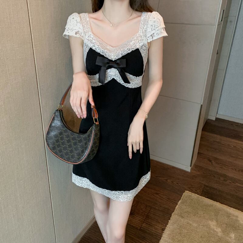 フランスのレトロなコールドスタイルの女性のドレス、ハイエンドの軽い贅沢、女性と王室の姉妹、軽い成熟したスタイルのレースのステッチドレス女性の夏 サマー 夏物 yingd37387703290