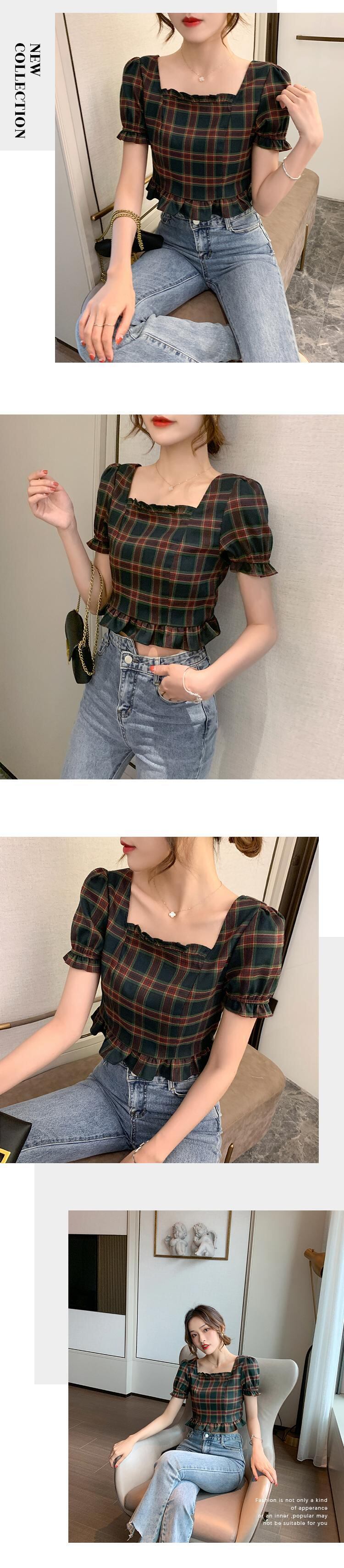 スクエアネックパフスリーブトップレディース2020夏新作シャツ女性デザインセンスニッチショートショートシフォンシャツ サマー 夏物 スクウェア yingd88125552577