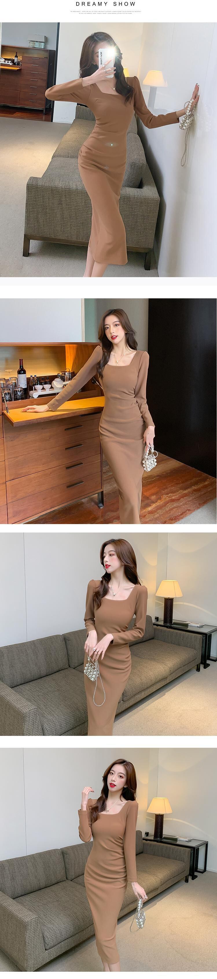 2021年の初秋のハイエンド気質ドレス、インペリアルシスターの新しいスタイル、軽く調理された風、ウエスト、薄い気質、スプリットミドル丈スカート オータム 秋物 yingd25049561794