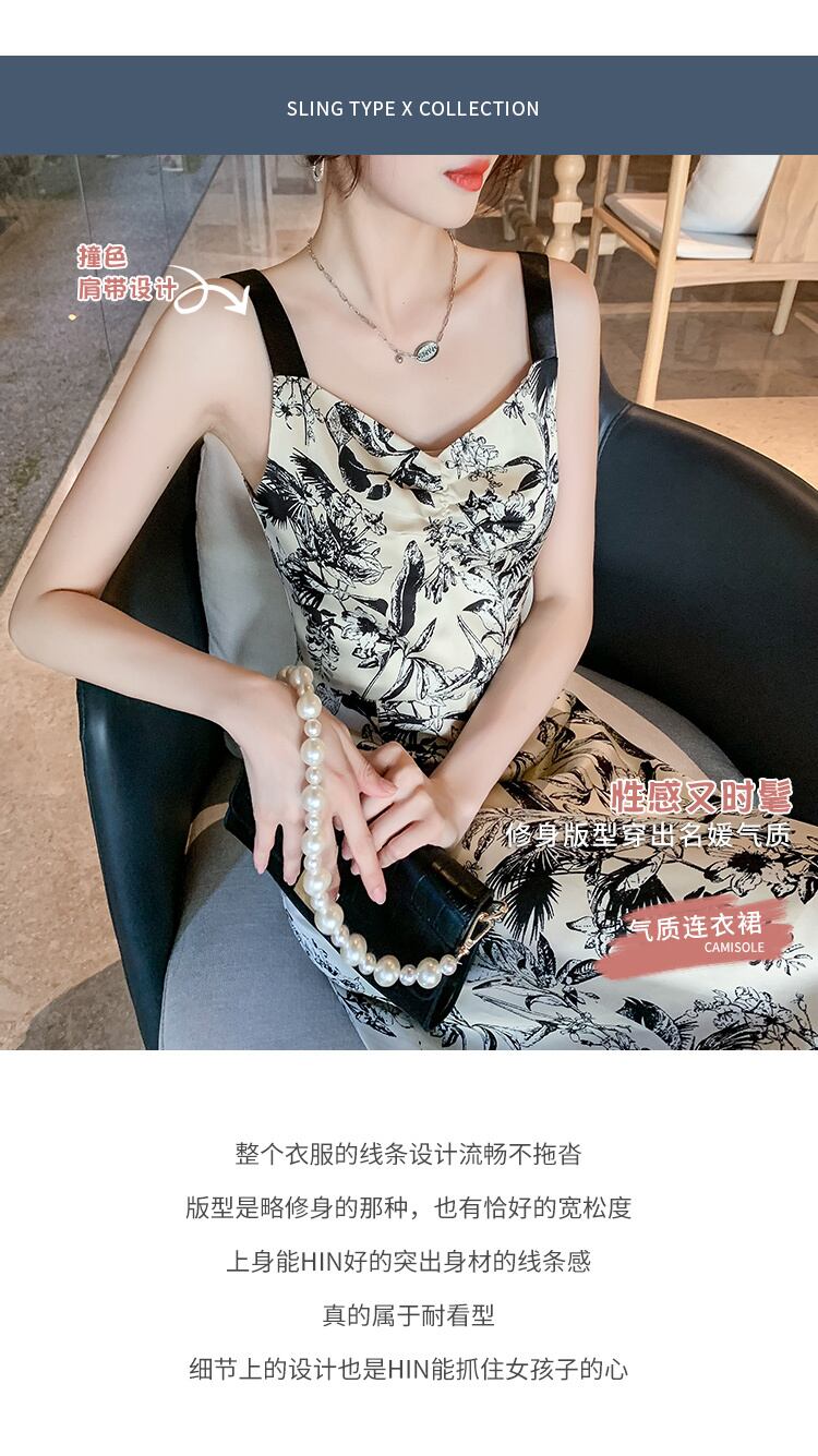 フランスのレトロな姉の軽い調理された風のスリングドレス膝の上に長いスリムな気質プリントスリングドレス女性の夏 ロング サマー 夏物 yingd35086635231