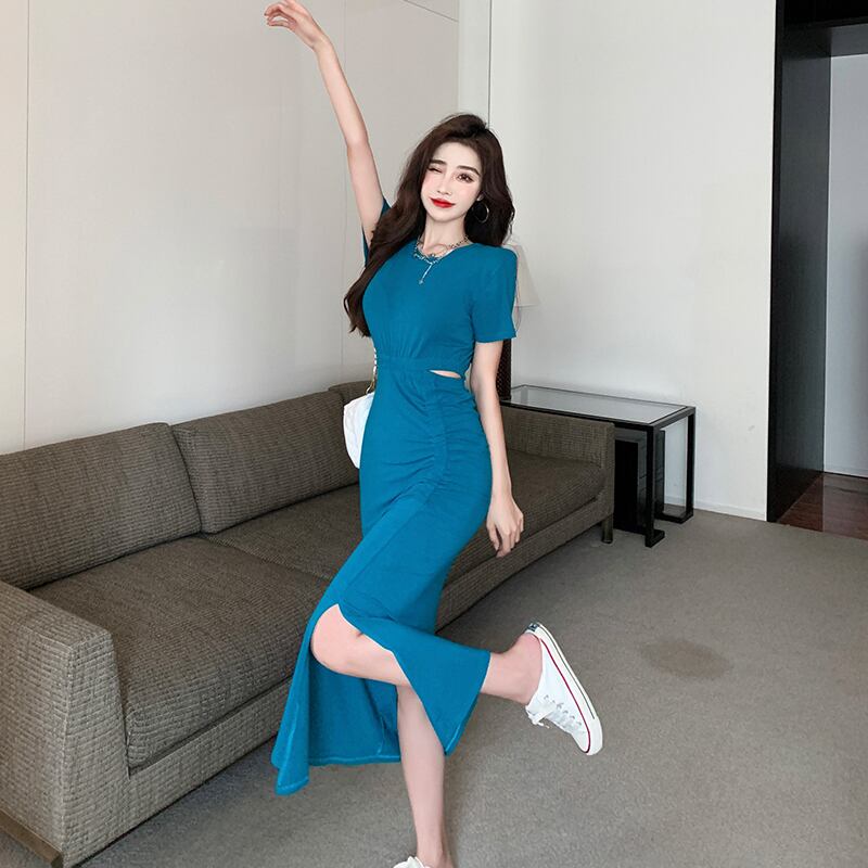 フランスのレトロなコールドスタイルの婦人服ハイエンドライトラグジュアリーレディースセクシーウエストオープンスプリットロングドレス女性夏 サマー 夏物 yingd81125879554