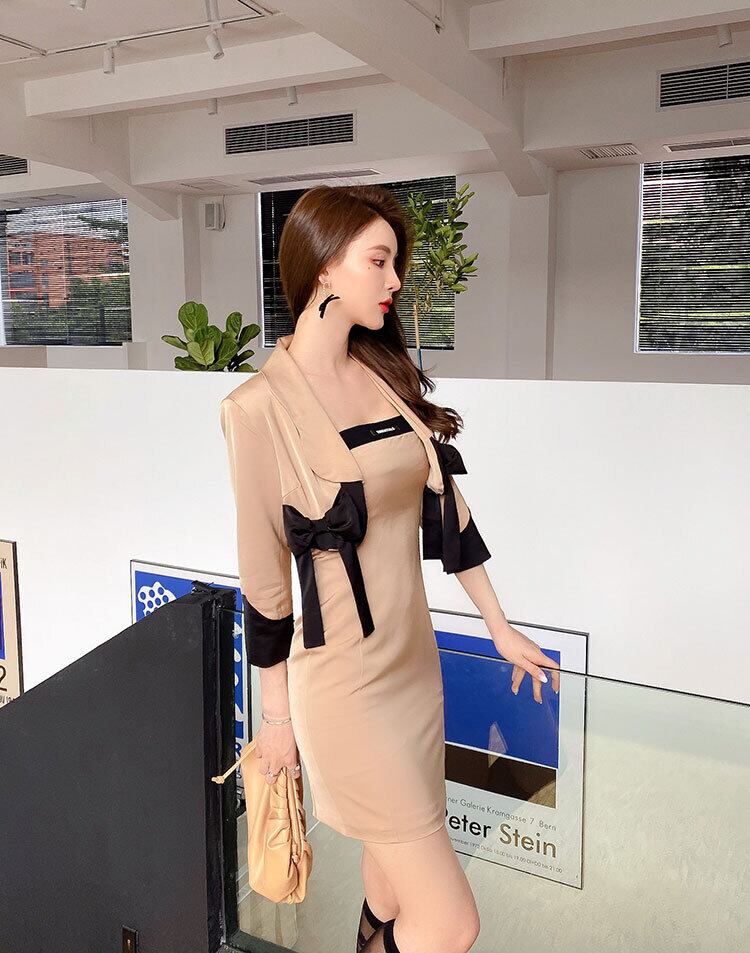 ユウジエライトマチュアスタイルスーツスカート女性香港スタイルシックレトロセクシーバッグヒップドレススモールスーツジャケットツーピース yingd4049059926