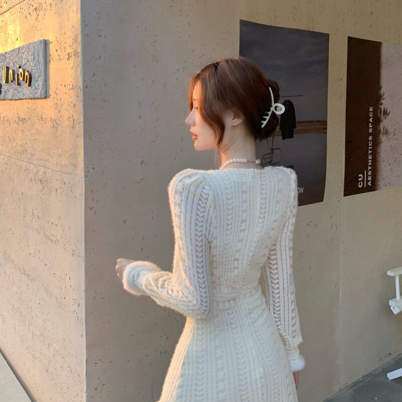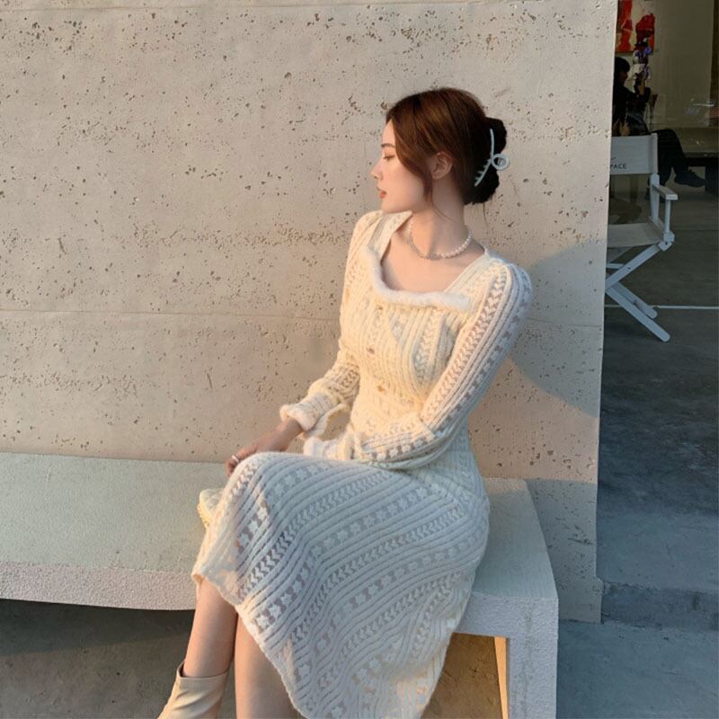 軽くて贅沢なデザインのスカート、ウエストウエスト、細い気質、レディーススクエアカラー毛皮のような冬の厚いレースのドレスの女性 ウィンター 冬物 スクウェア yingd87305584807