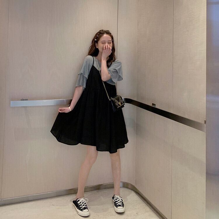 ネットレッドスーツスカート女性2019年新夏はとても妖精フレンチニッチなTシャツサスペンダードレスツーピーススーツ サマー 夏物 yingd63900334885
