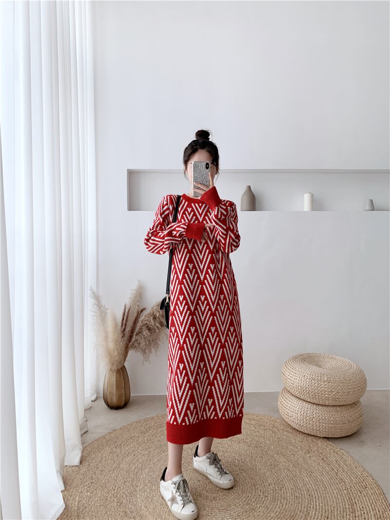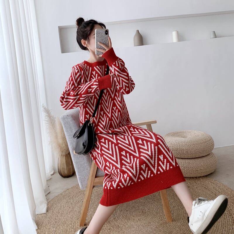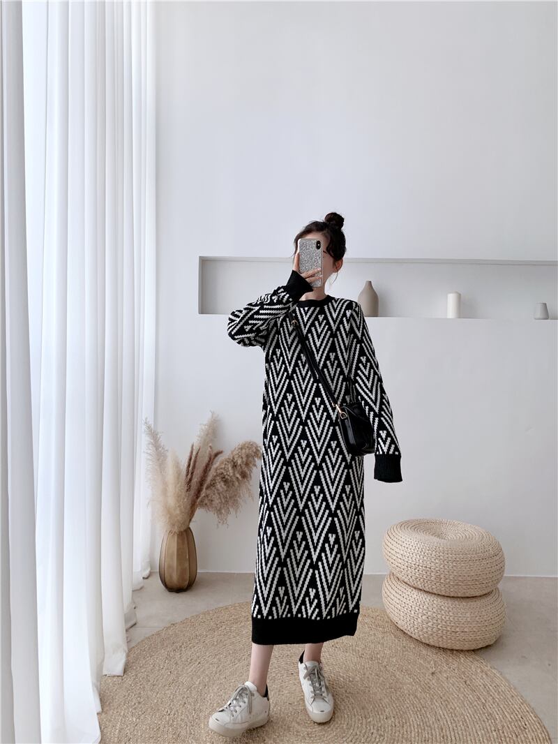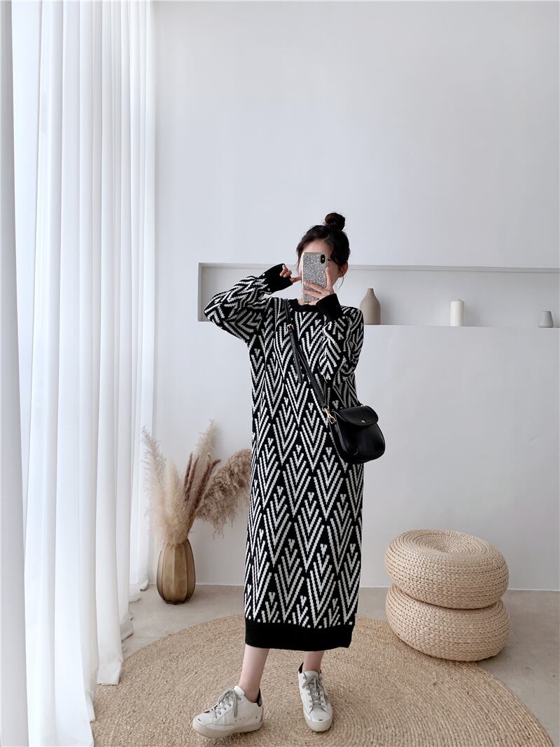 オーバーコート、気質、長い膝上セータードレス、ルーズで厚手のインナースカート、ベースニットドレス秋冬女性 ロング ウィンター 冬物 yingd47655329218