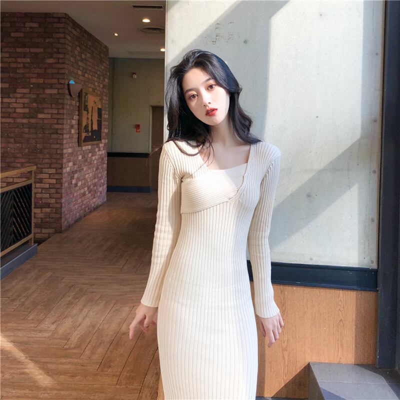 フランスのレトロなロングスカートは薄くて高品質なデザインのニッチニットドレス秋の服2020新しい女性 オータム 秋物 yingd26702310101