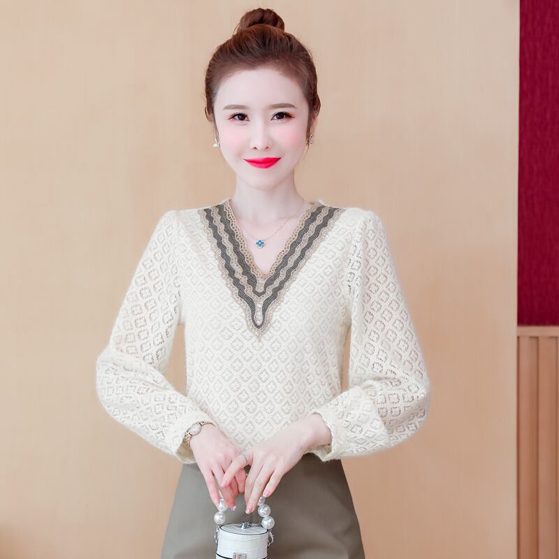 レースボトミングシャツ女性の2021年春の新しいスタイルのフレンチレトロセクシーなVネックウエスタンスタイルのシフォンシャツトップ スプリング 春物 yingd16689247455