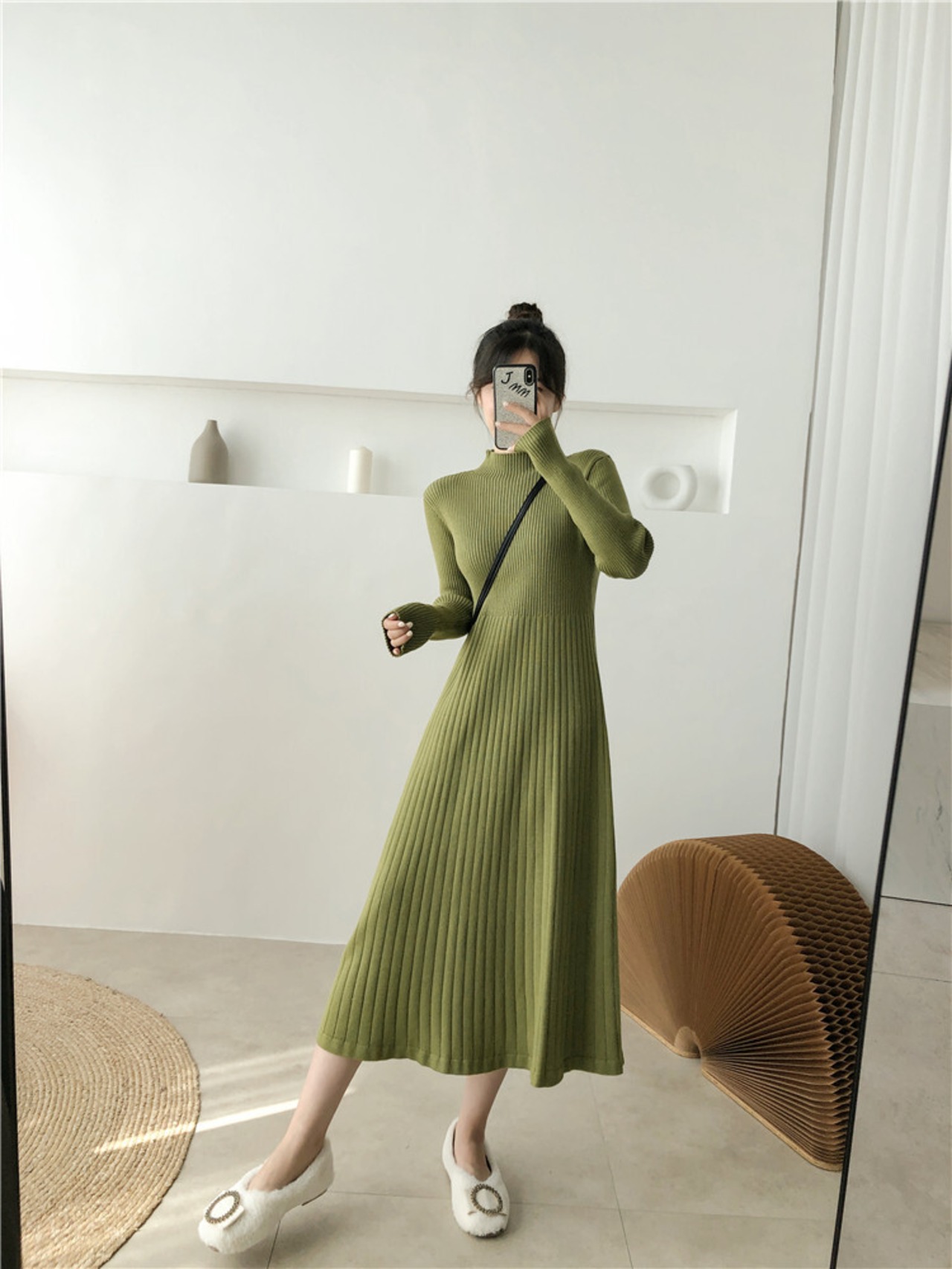 レディースニットワンピース秋冬新作フレンチスタイルレトロロングスカート、内側にオーバーザニーセータースカート ウィンター 冬物 yingd85087025812