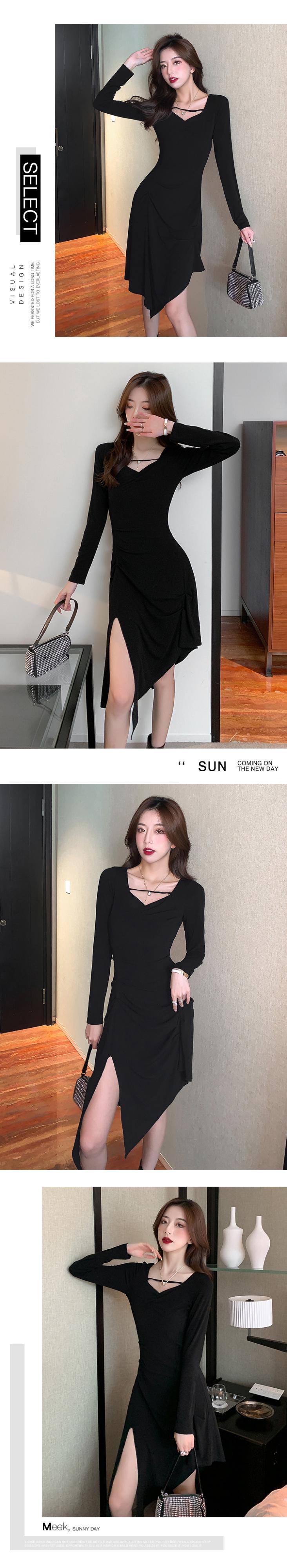 2021年秋新しいフランスのキキョウティーブレイクドレススリムな痩身気質デザイン不規則なドレスの女性 オータム 秋物 yingd24904487753