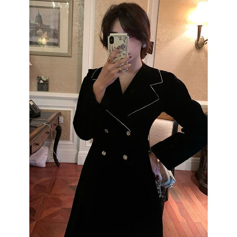 フランスのレトロなヘップバーンスタイルのロングスカート、シックなデザイン、揚げた通りの姉、軽い成熟したスタイルのベルベットのドレス、秋と冬の女性 ストリート オータム 秋物 ウィンター 冬物 yingd10633296436