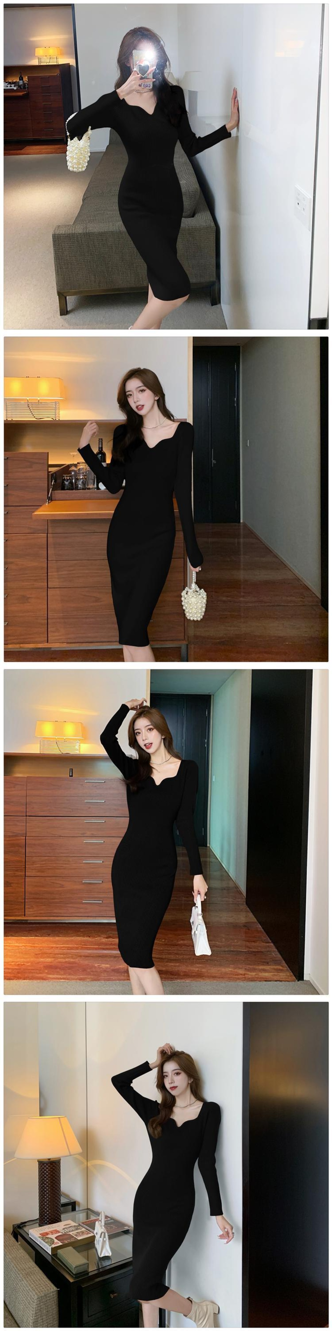 気質フェミニンセクシーバッグヒップニットワンピース秋冬新作スリムスリミングベースセータースカート オータム 秋物 ウィンター 冬物 yingd94247197751