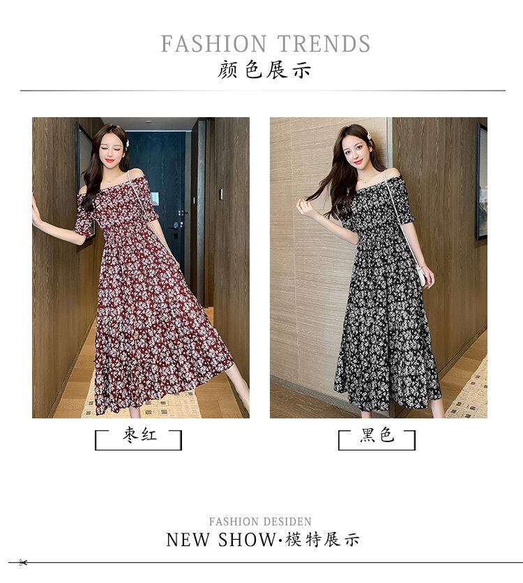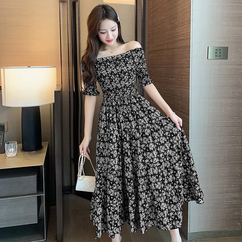 フランスのレトロなキキョウティーブレイクドレスセクシーなワンショルダーシフォンフローラルドレス女性のウエストウエスト夏スリムロングスカート サマー 夏物 花柄 yingd78709173139
