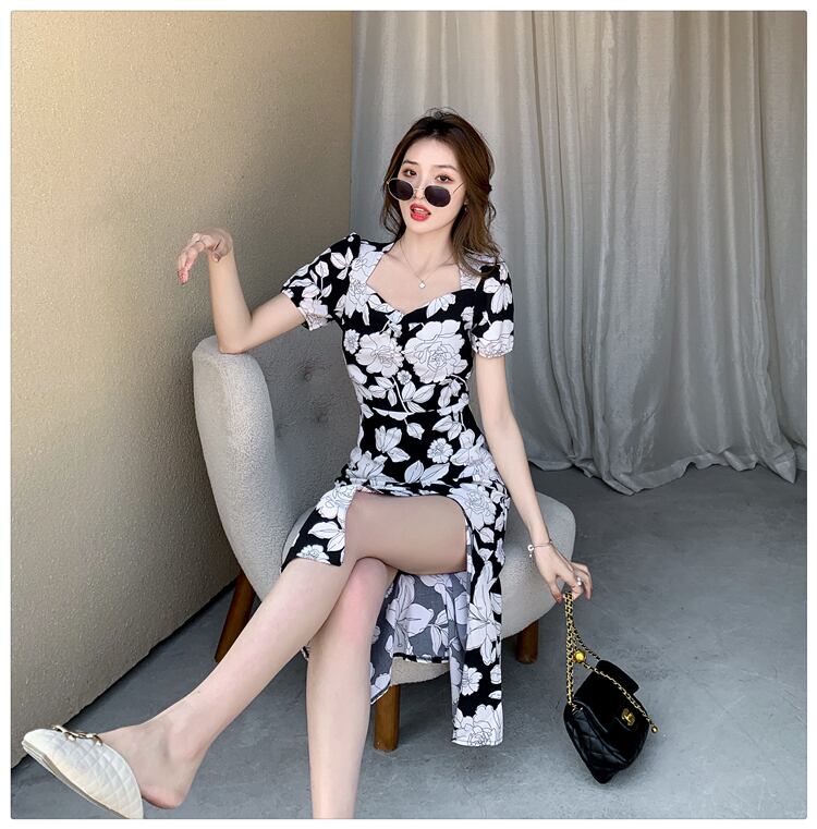 フランスのレトロなヘップバーンスタイルのロングスカート、夏の気質、軽い贅沢、有名人の女性と王室の姉妹、軽い調理された風、スプリットフローラルドレス、女性の夏 サマー 夏物 花柄 yingd94169324621