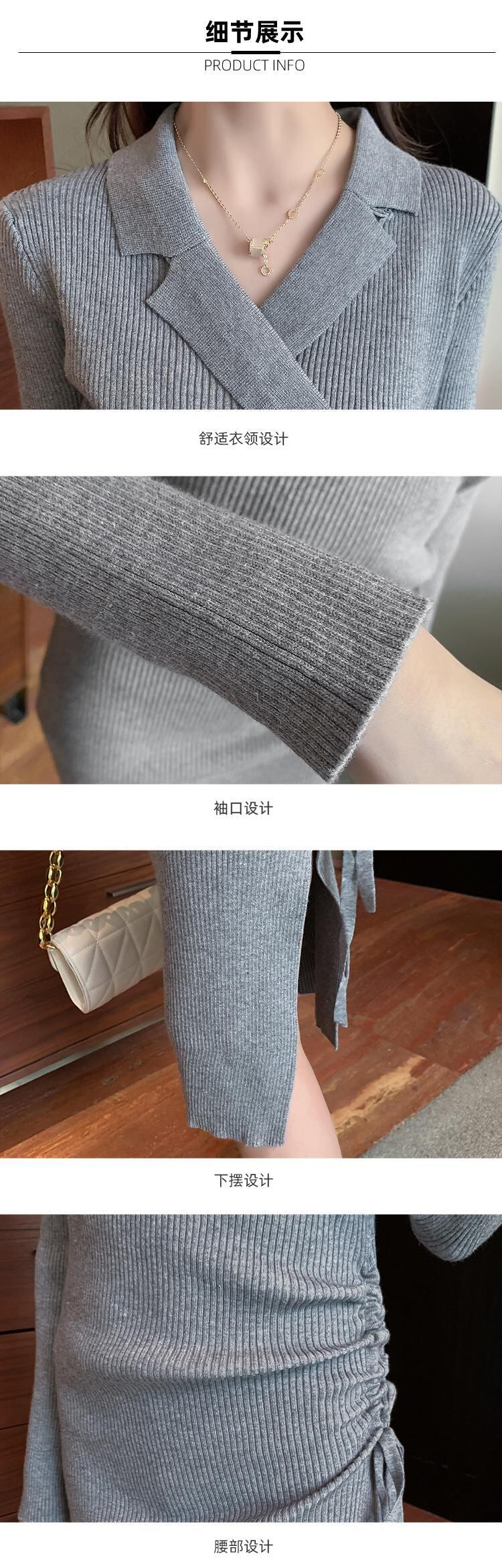 センスロングバージョンオーバーザニーセータースカートシックなハイエンドのドローストリングのセンスがニットドレスの女性の秋と冬の中に折りたたまれています オータム 秋物 ウィンター 冬物 yingd61310736460