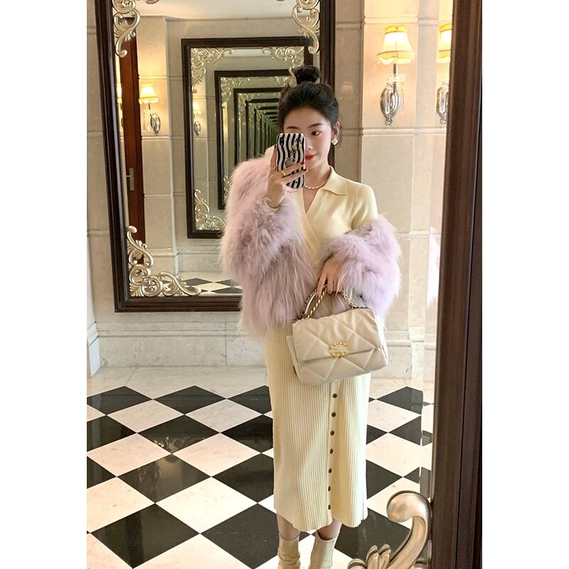 フレンチティーブレイク、優しい初恋、純粋な欲望、ニットのインナードレス、コートを着た女性の秋と冬、長い膝上セータードレス ロング オータム 秋物 ウィンター 冬物 ピュア yingd74007871653