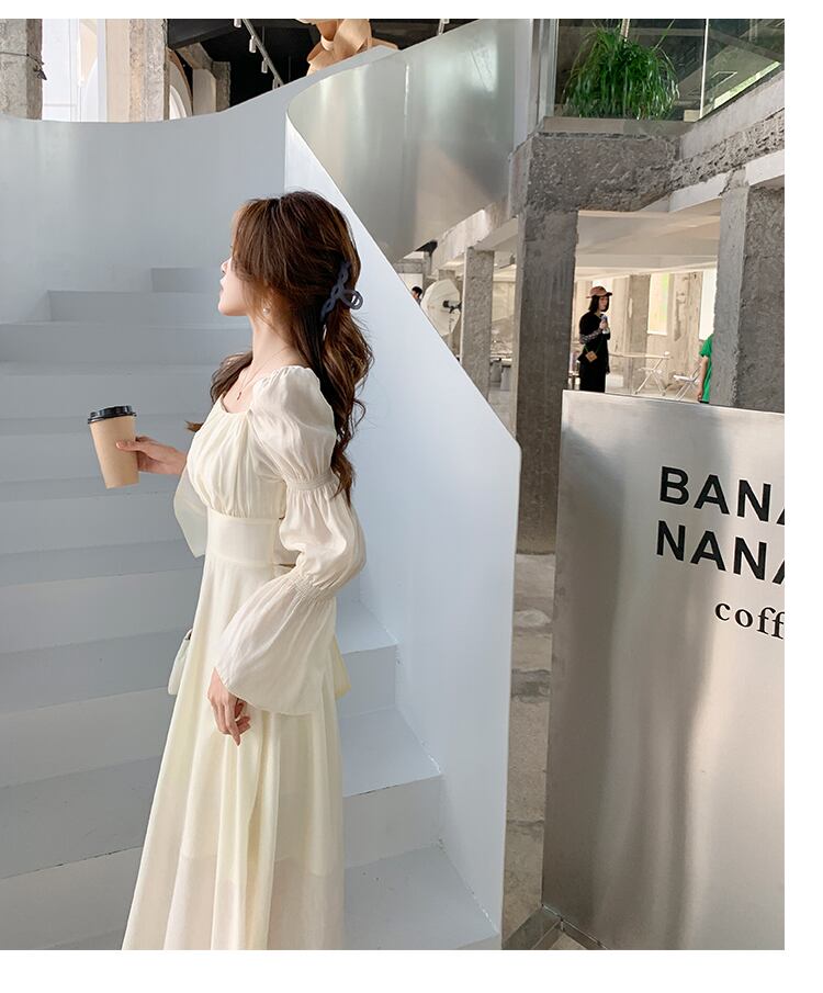 2021年秋新しい女性のフランスの穏やかな風のニッチ膝上ロングスカートウエストスクエアカラーフェアリードレス薄い オータム 秋物 スクウェア yingd73214770154