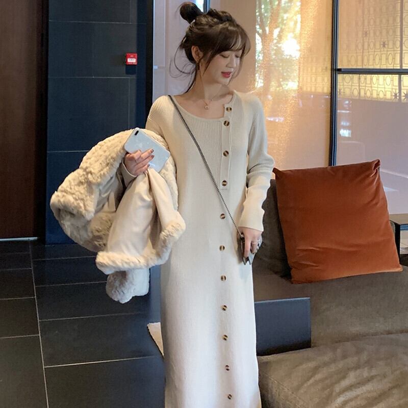 コートに長い膝上セータードレスを着て、ウエストは細く、秋冬の気質のゆじえは風ニットドレスを軽く調理しました ロング オータム 秋物 ウィンター 冬物 yingd7959312599