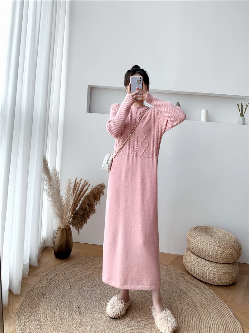 秋冬ベーススカートコート付き、ロングバージョンオーバーザニーセータースカート、ソフトワキシーライン、レイジースタイル、ニットワンピース、女性 オータム 秋物 ウィンター 冬物 yingd33670885973