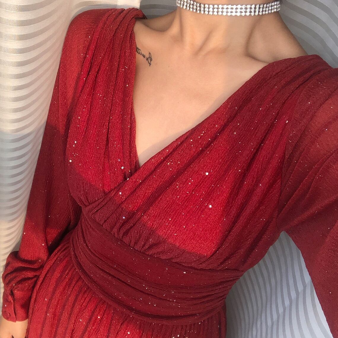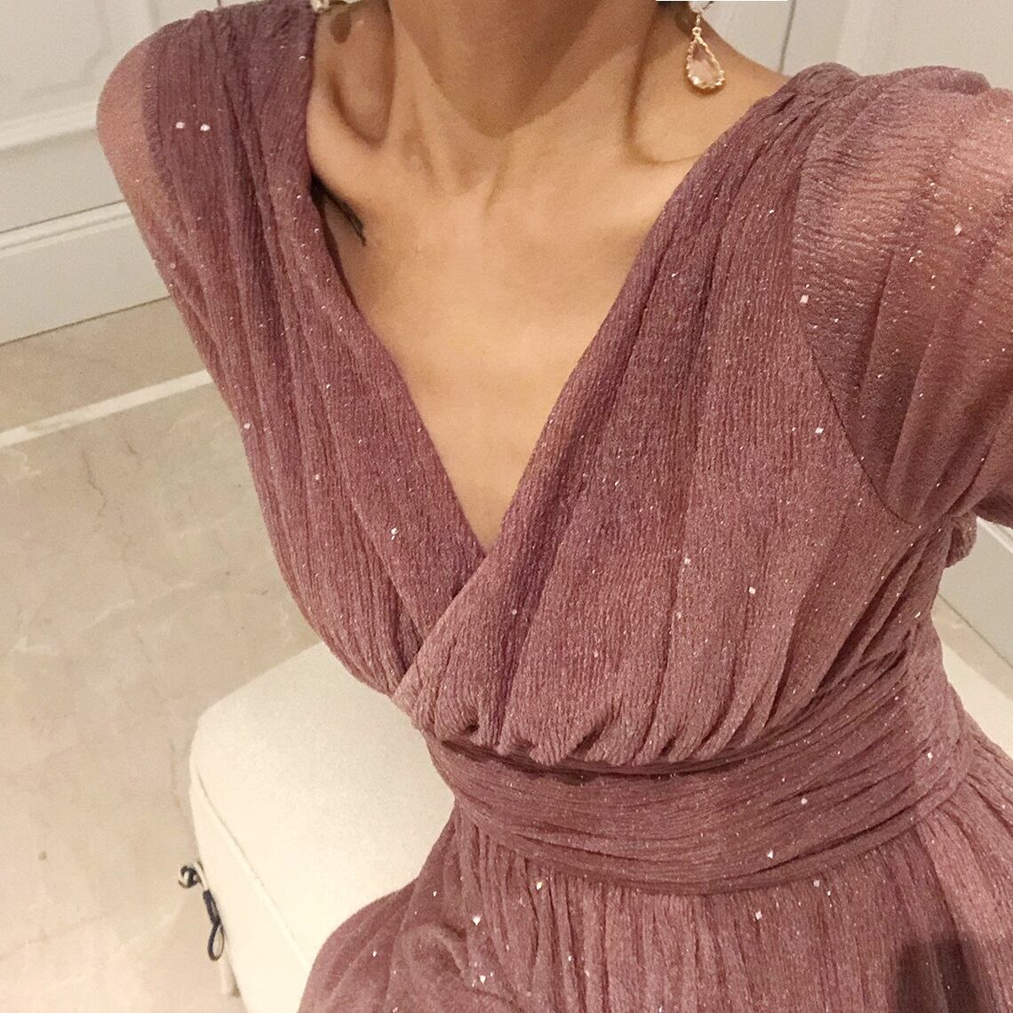 2020年秋新作レディースフレンチレトロロングスカートは薄くて上質なVネックライトマチュアスタイル長袖ワンピース オータム 秋物 yingd17188411689