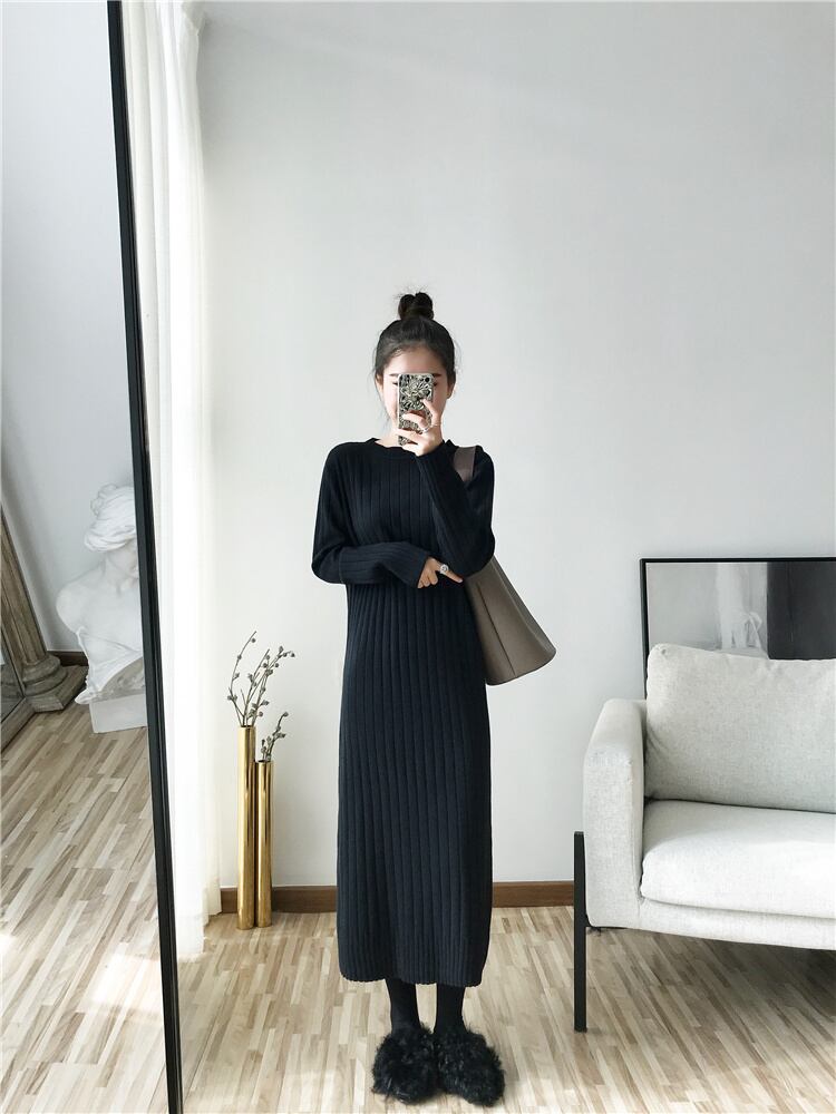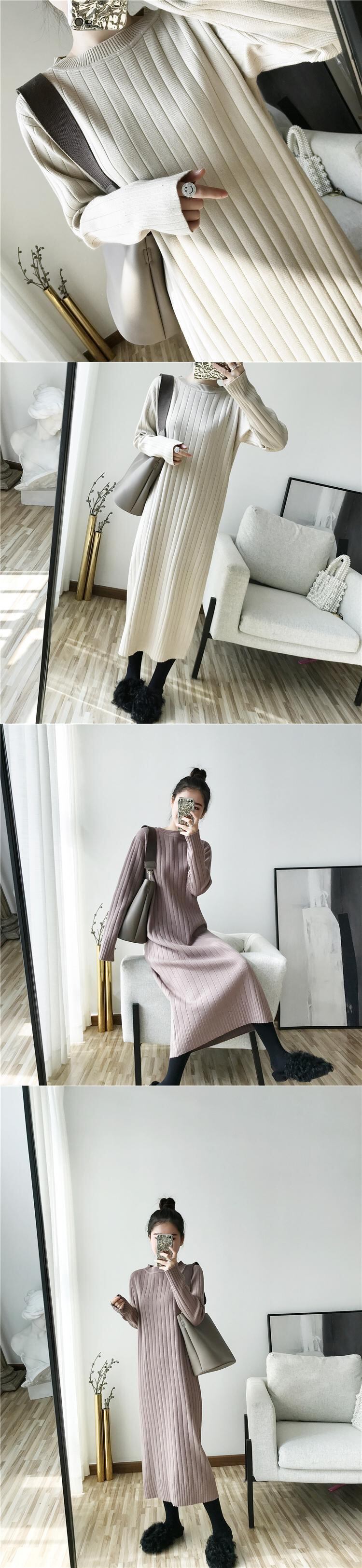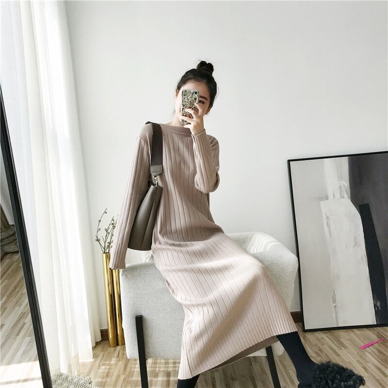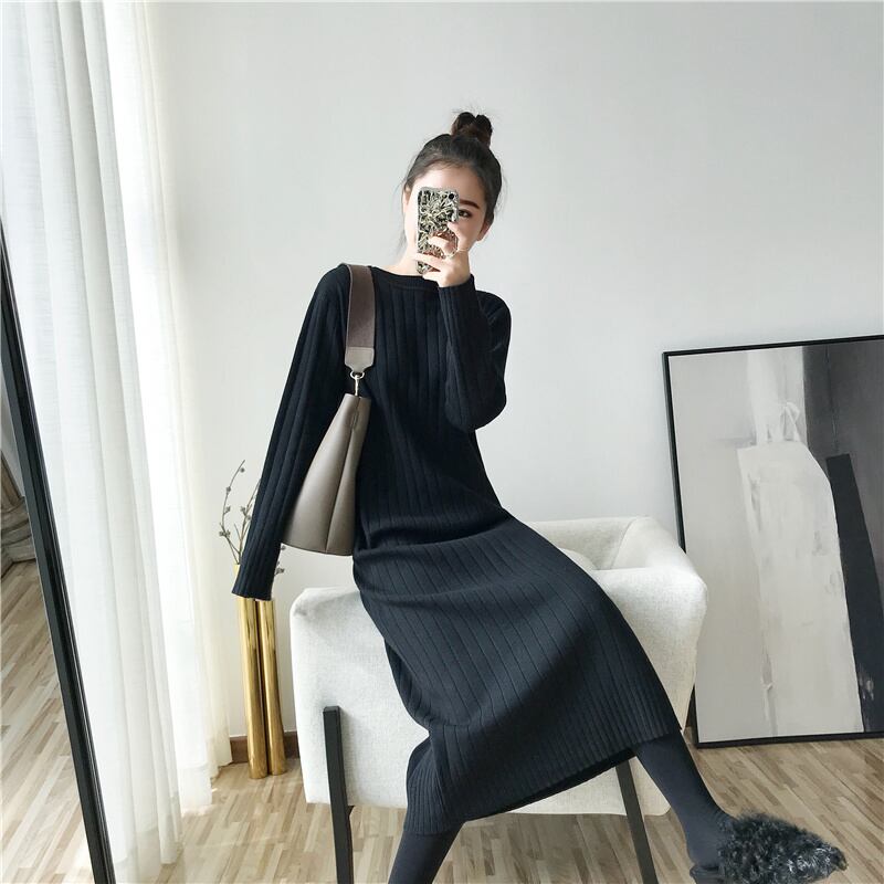 フランスのレトロな長い膝上セータードレスは薄く、ルーズで怠惰で、ベースニットドレスは秋と冬の女性です ロング オータム 秋物 ウィンター 冬物 yingd43368241253