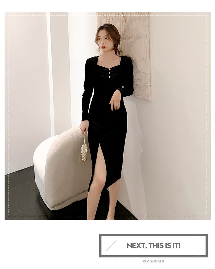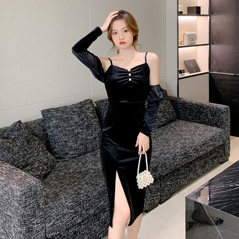 フランスのレトロなヘップバーンスタイルのシックなデザイン気質の女神ファンベルベットスリングツーピースドレス女性の秋と冬 オータム 秋物 ウィンター 冬物 yingd80502756667